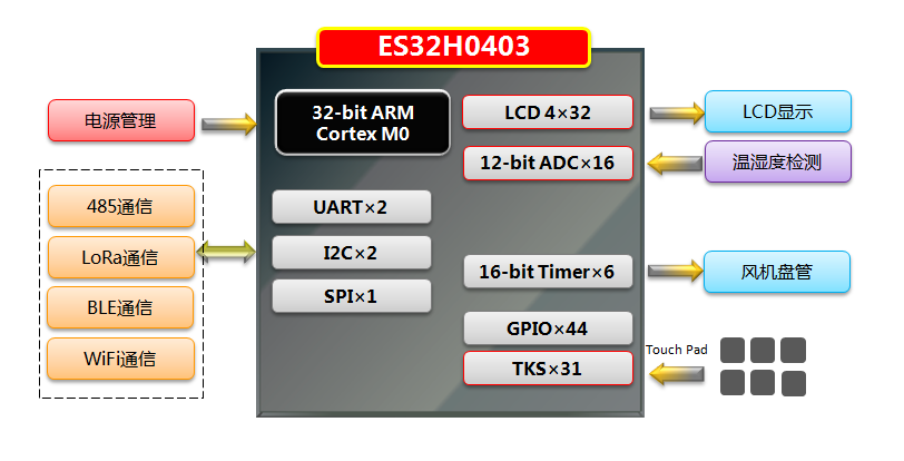 | 功能說明: ①智能溫控 ②遠(yuǎn)程管理 | 特征說明: ①DMA功能 ②RTC功能 ③多路PWM ④多路ADC ⑤31通道觸摸按鍵 ⑥內(nèi)置LCD段碼驅(qū)動(dòng) |